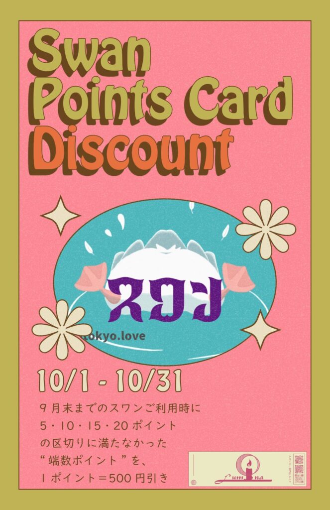 9月末までのスワンご利用時に5・10・15・20ポイントの区切りに満たなかった端数ポイントを、1ポイントにつき500円割引いたします。